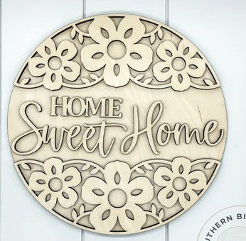 Door hangers and rounds are roughly 18" and ready to be painted. Your choice of hanging hardware is supplied so it will be ready for your front door.